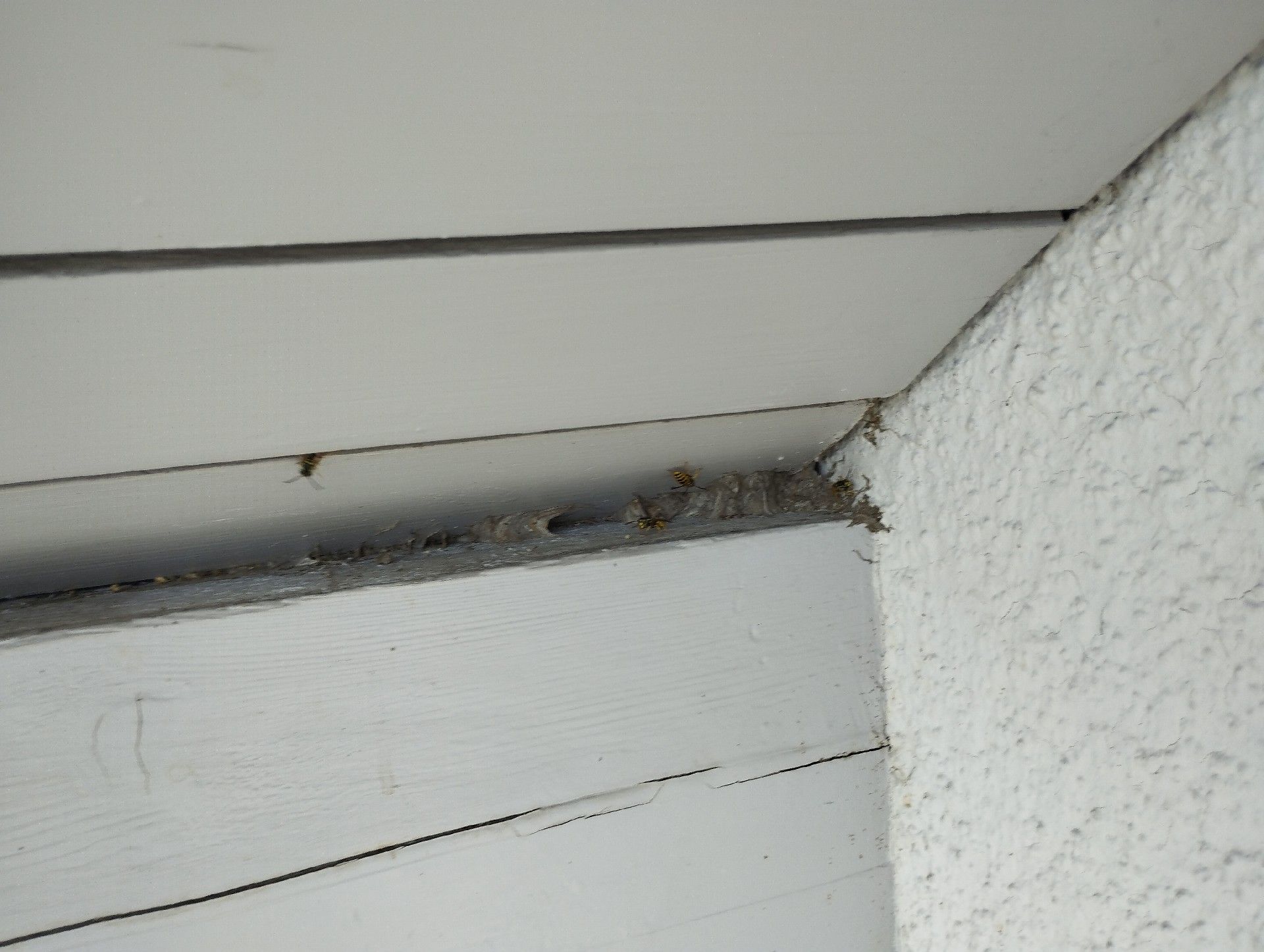 Das Abkleben des Einfluglochs kann zwar zu einer vorübergehenden Abhilfe beitragen, um die Wespen fernzuhalten, doch sie versuchen manchmal, ein neues Einflugloch zu schaffen, schlimmstenfalls ein Einflugloch ins Innere des Hauses oder direkt durch das beklebte Loch.